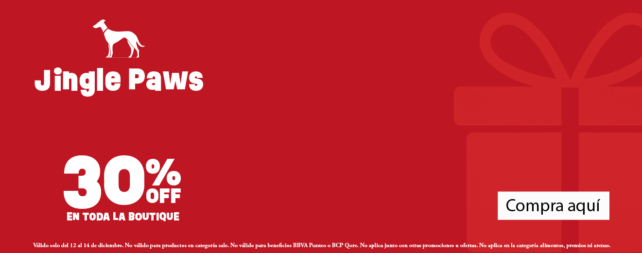 Agrega 2 productos en el carrito y paga el 2do con un 50% dsct en toda la tienda (se descuenta el producto de menor valor). Se puede hacer combinaciones. Sujeto a disponibilidad. No valido para alimentos, premios, antipulgas ni productos en SALE. No acumulables con otras promociones y/o descuentos. Válido del 20/11/25 al 23/11/25