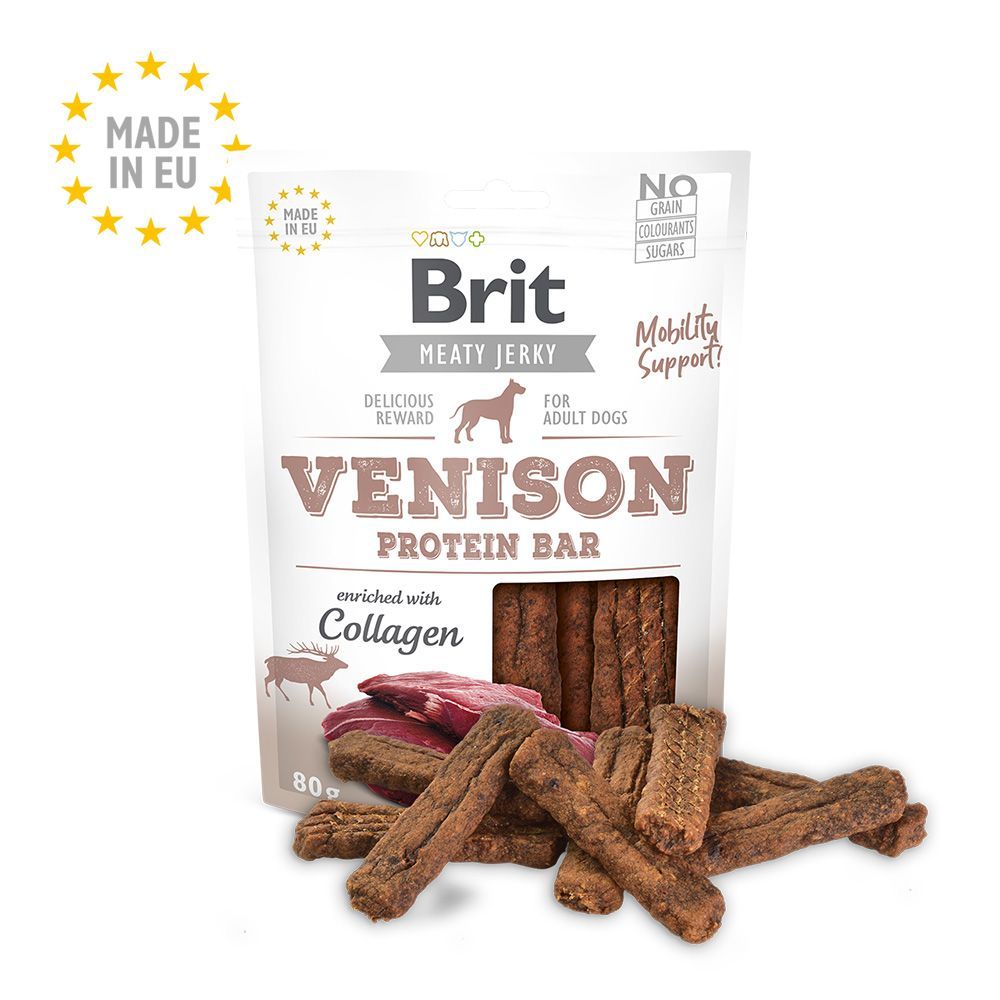 Brit Jerky Snack Venison Protein Bar, snack para perros en la tienda de su mascota.
