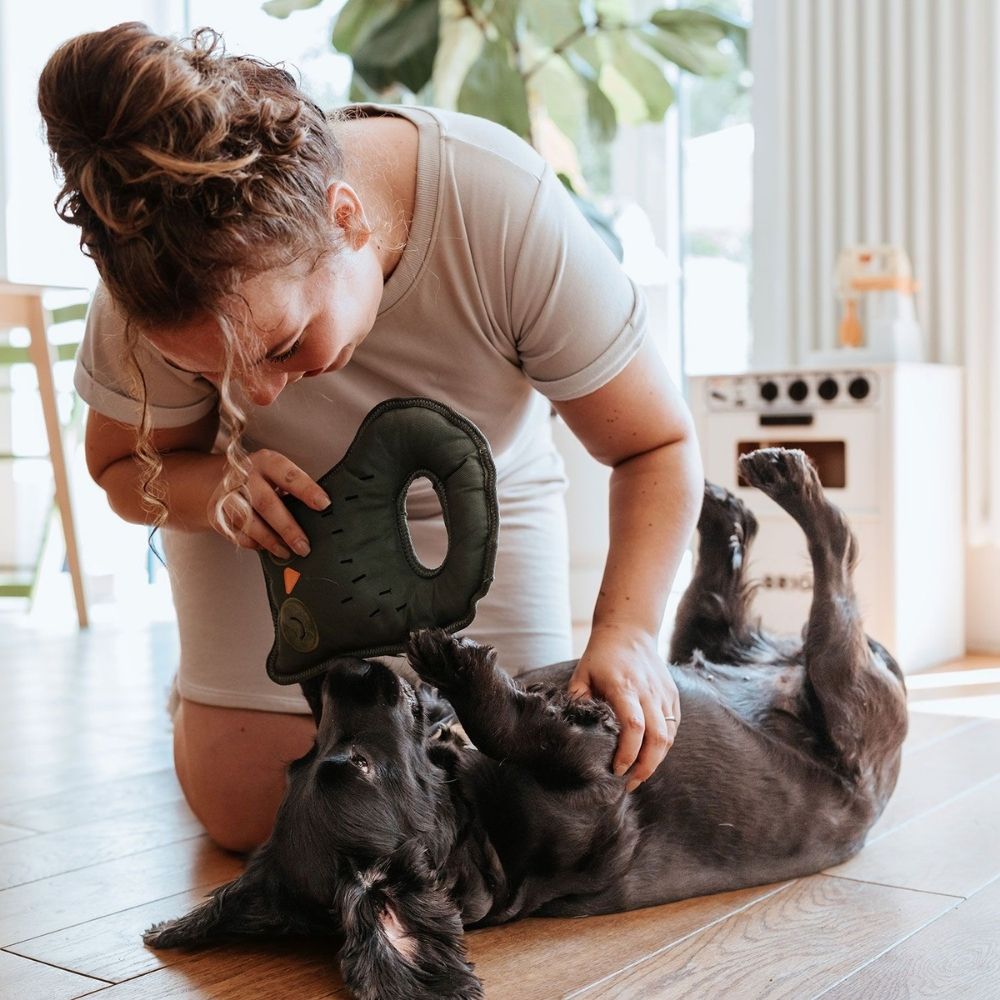 Los juegos de tirar entre perro y humano pueden ser una maravillosa sesión de entrenamiento, un divertido desafío de fuerza y una interacción que fomenta la confianza, siempre que las reglas estén claras y el juego pueda interrumpirse en cualquier momento. Los animales del bosque dormidos de la serie TOUGH TUNDRA son los juguetes perfectos para largas sesiones de juego de tirar. La abertura integrada ofrece un agarre cómodo para la mano, y la tela densa y texturizada es especialmente resistente al tirón, robusta y duradera. Los pequeños agujeros en el tejido causados por los dientes pueden incluso rascarse fácilmente para repararlos. La resistencia a la abrasión y al desgaste hace que TOUGH TUNDRA sea un juguete favorito que soporta incluso los juegos más intensos.